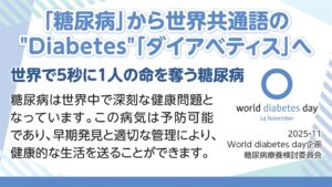 今月のテーマは、世界糖尿病デー(World Diabetes Day)企画の『「糖尿病」から世界共通語のDiabetes「ダイアベティス」へ』です。