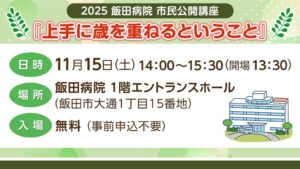 2025年11月15日(土)に開催した、2025市民公開講座『上手に歳を重ねるということ』の模様を、当院の公式YouTubeチャンネルにて公開しました。
