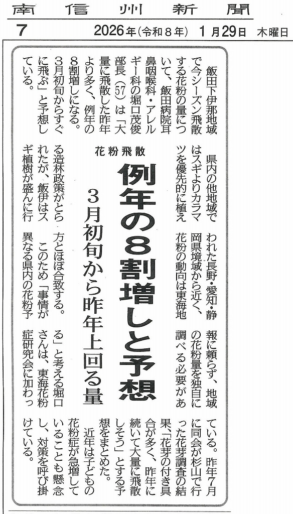 南信州新聞 2026年(令和8年)1月29日(木) 7面 -